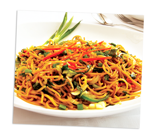 | Fried noodles topped with chefs special vegetable or chicken sauce | |||
