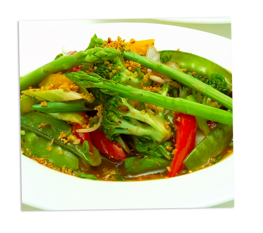 | A wonderful combination of tofu, carrots, bamboo shoots, water chestnuts and broccoli tossed in garlic to delight every veggie lovers. | |||