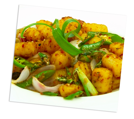 | A wonderful Indian creation. Vegetable balls with onion, garlic, ginger, scallion and green chilli in soy sauce | |||