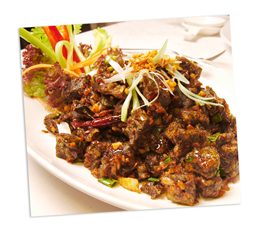 | Slices of lamb cooked in an exotic sauce made from beans, five spice powder and other Chinese herbs. | |||