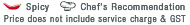 | Diced chicken tossed with the Chef’s special spicy aromatic and tender root ginger sauce | |||