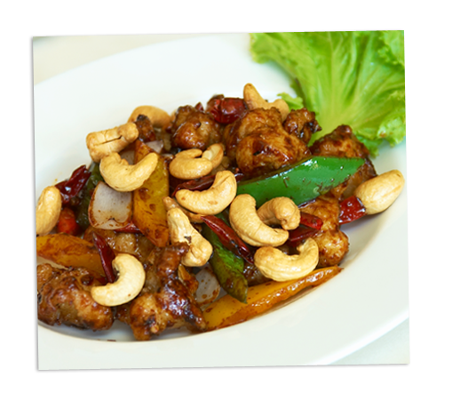 | Diced chicken cooked in garlic soy sauce with dry red chilli and cashew nut | |||